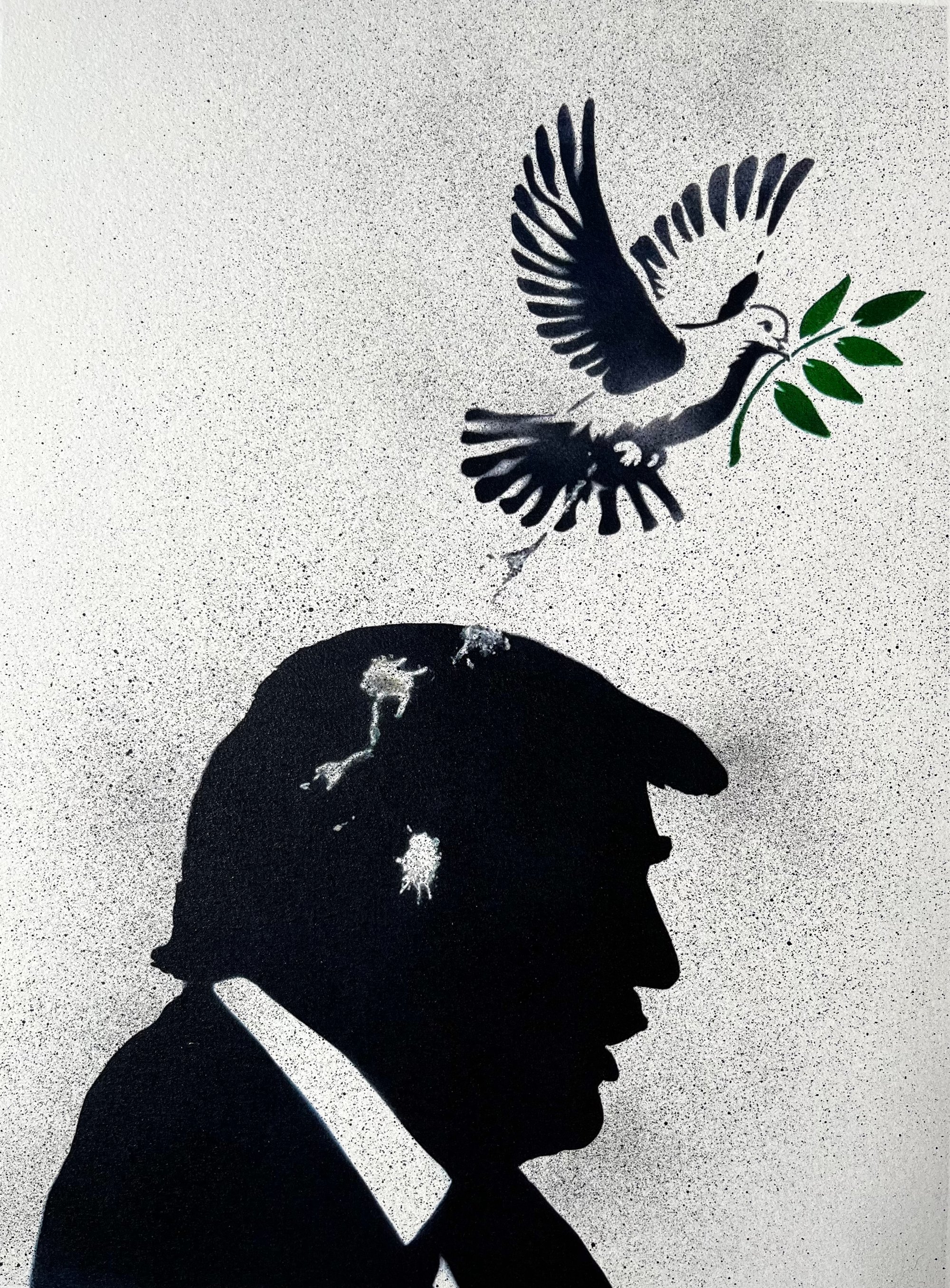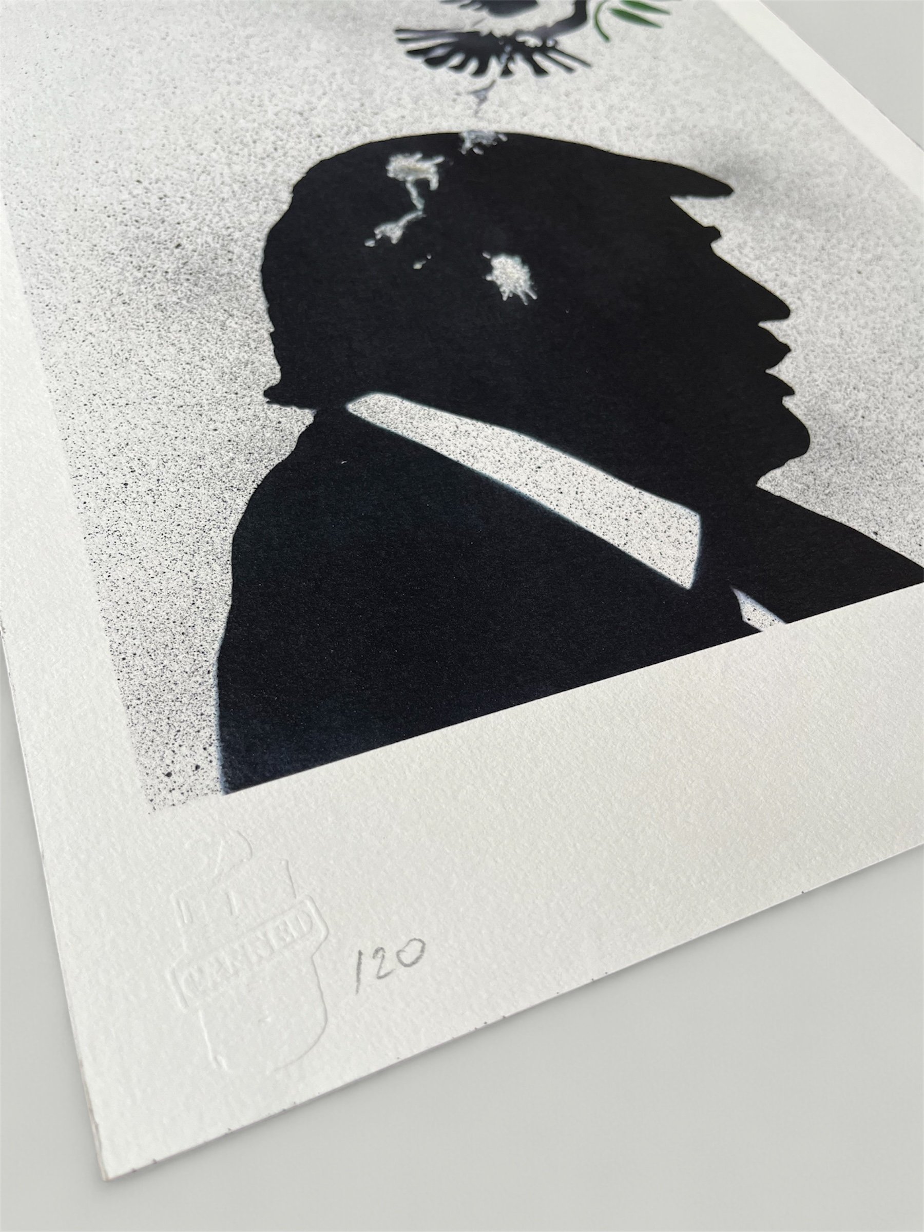 Reproduction de la peinture originale "Piece of Peace". Réhaussée à la main à la peinture aérosol noire. Chaque reproduction est unique.